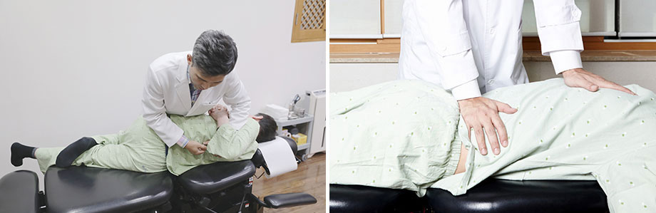 한의사가 직접 허리 주변의 경직된 근육을 부드럽게 풀어주어 주변 근육 및 인대의 기능을 회복, 강화시키는 효과가 있습니다. 모커리 이완추나는 단순 목, 허리통증 환자 뿐 아니라 파열된 디스크, 말기 척추관협착증, 2단계 이상 밀려나간 척추전방전위증 등의 고난도 퇴행성 척추질환 환자도 치료가 가능하며, 그 치료 효과를 SCI급 논문 발표를 통해 객관적으로 검증 받았습니다.