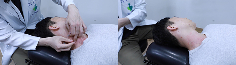 또 모커리한방병원에서는 목 앞쪽 근육에 침 치료도 진행하고 있습니다.