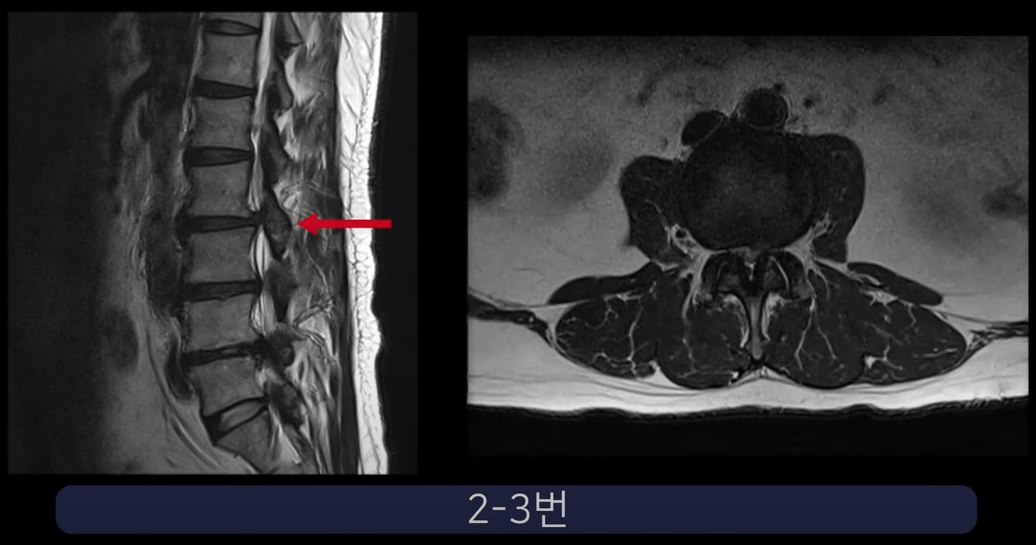 실제 척추관과 추간공이 심하게 막힌 두 환자 케이스를 보여드리겠습니다.