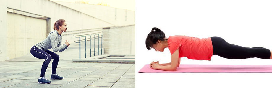 4. 맨몸 스쿼트 제자리에서 맨몸으로 할 수 있는 스쿼트는 몸이 내려가는 각도나 횟수를 조절할 수 있기 때문에 맨몸 스쿼트는 척추전방전위증 환자의 허리를 튼튼하게 만드는데 도움이 될 수 있습니다.