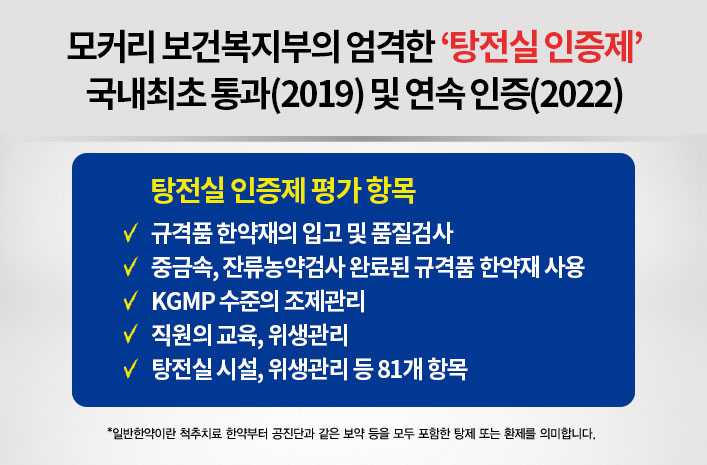 정확하고 엄격한 관리시스템으로 재배에서부터 철저하게 관리합니다. 모커리한약은 최고의 품질을 자랑하는 청정한약재를 사용합니다.