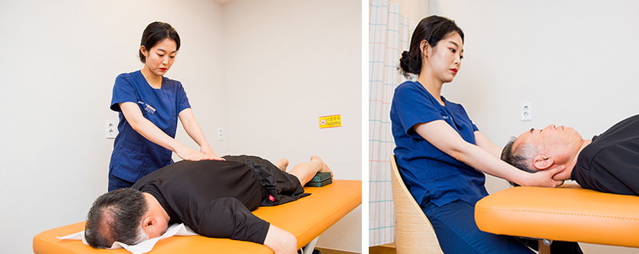 • 교통사고로 경직된 척추 주변의 근육과 인대에 침을 놓아 자극을 줌으로써 뭉친 근육을 풀어주고 혈액순환을 활발하게 만들어 통증을 감소시켜주며, 근육과 인대를 유연하게 만들어 줍니다. 또한 손상된 부위에 직접 자극을 주어 재생물질 분비를 촉진시켜 목과 허리 주변 근육의 기능 회복과 강화에 도움을 줍니다.
