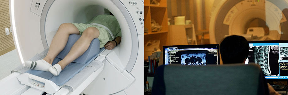 MRI 검사를 통해 위 부위를 세밀하게 진단할 수 있으며, 골절 여부와 퇴행 여부, 염증 유무, 신경 압박 상태 등을 꼼꼼하게 진단할 수 있습니다.