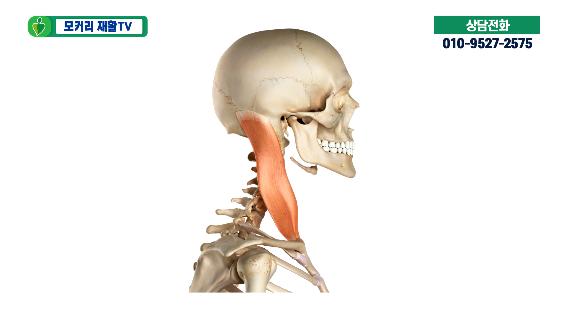 먼저 흉쇄유돌근은 우리가 고개를 측면으로 돌렸을 때 귀 뒤쪽에 있는 볼록한 뼈인 유양돌기에서부터 시작해 쇄골과 흉골에 와서 붙는 근육입니다.