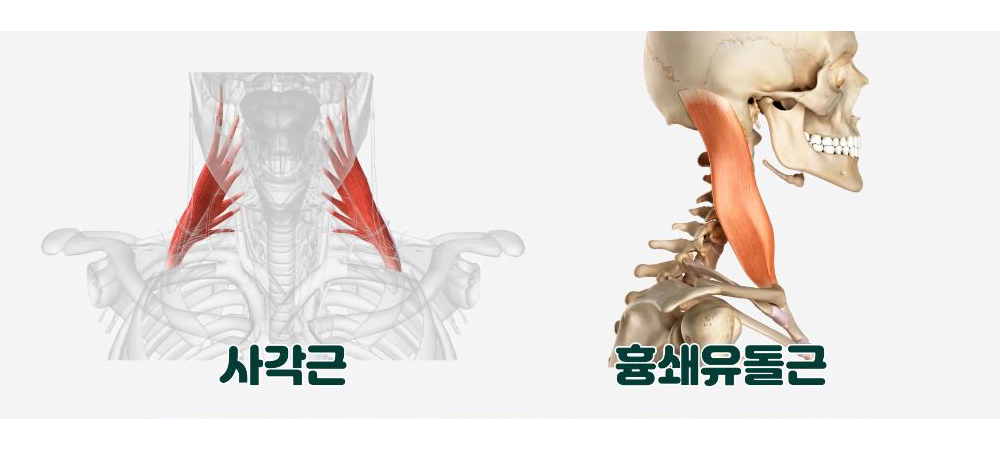 간단하게 말씀 드리자면 쇄골 바로 위쪽의 사각근, 그리고 흉쇄유돌근을 풀어주는 겁니다. 이 근육을 잘 풀어주면 정말 놀랍도록 증상이 완화되는 효과를 느낄 수 있습니다. 목 앞쪽 근육에 대한 자세한 마사지 방법은 아래 영상을 참고하시길 바랍니다.