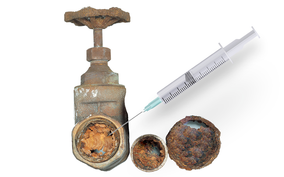 말기 협착증은 영상을 보시다시피 두꺼워진 인대와 앞에서 밀고 있는 디스크로 인해 척추관 안에 신경이 지나갈 공간이 거의 남아 있지 않습니다. 예를 들어 녹슨 수도관을 생각하면 쉽습니다. 녹이 많이 슨 수도관 안을 보면 녹으로 수도관이 꽉 막혀 있는 것을 확인할 수 있습니다. 이처럼 척추관협착증도 두꺼워진 인대와 눌려서 밀려나온 디스크 등이 척추관을 꽉 메우고 있고, 그 사이를 신경이 겨우 지나가고 있기 때문에 빈 공간 자체가 거의 없습니다.