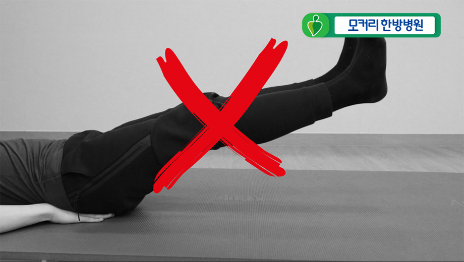 만성 허리통증과 퇴행성 허리디스크, 협착증이 있는 분들은 허리가 약해져 있기 때문에 고관절 운동을 하는 중간에 반대쪽 허리나 골반이 아플 수 있습니다. 운동 시 통증을 느낄 때는 운동을 하지 않는 것이 좋습니다. 이 운동을 했을 때 무리가 되지 않는 분들만 꾸준하게 해주시기 바랍니다. 무릎 운동과 고관절 운동은 한 다리씩 번갈아 가면서 운동을 해주시라고 설명 드렸는데, 운동을 할 때 두 다리를 한꺼번에 들어올리면 허리에 굉장한 부담이 가기 때문에 오히려 허리가 손상될 가능성이 높아집니다. 따라서 무릎 운동과 고관절 운동을 할 때는 두 다리를 절대로 같이 들어올리지 말고 꼭 한 다리씩 번갈아 가면서 운동을 해주시기 바랍니다.