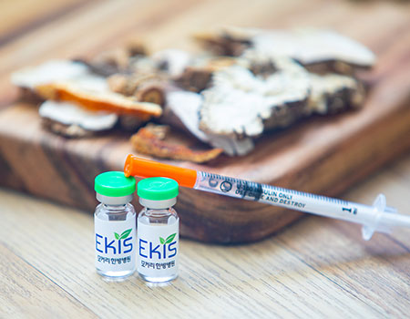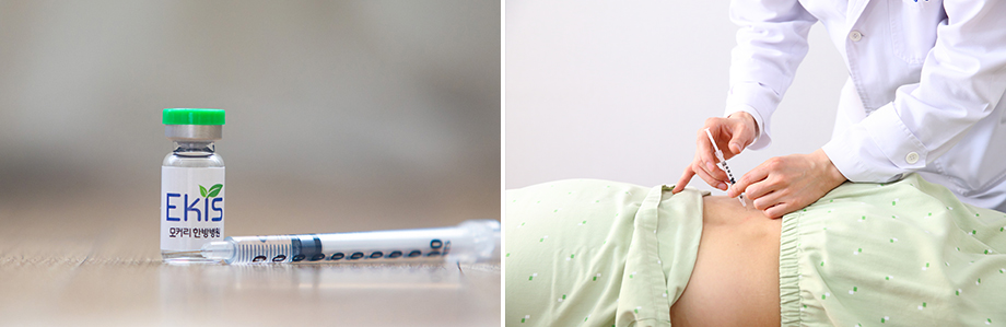 척추관협착증 환자의 근육과 인대는 퇴행성 변화로 약해지고 딱딱하게 굳어 있습니다. 에키스약침은 파골세포 분화 억제용, 연골세포 분화 촉진물 조성물(SG-II)로 특허*받은 강척한약을 정제한 약침액을 통증 부위 경혈에 직접 주입하는 치료입니다. 척추협착증으로 손상된 근육과 인대의 기능 회복 및 강화와 더불어 염증 및 통증을 빠르게 감소시켜주는 효과를 기대할 수 있습니다. 또한 척추관이 좁아져 나타나는 신경 손상이 더 이상 진행되지 않도록 막고 손상된 신경 재생을 촉진시켜 줍니다.