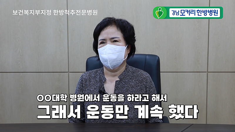 신경주사를 맞고도 아플 때 많이 하는 두 번째는 운동을 하는 겁니다. 거의 대부분의 병원에서 운동을 권합니다. 아래 환자분의 사례를 보겠습니다.