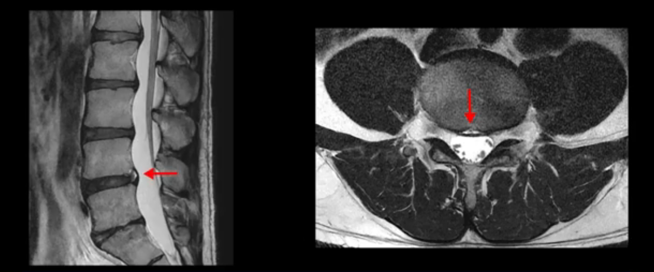 그럼 MRI를 자세히 봤으니까 이제 이 환자의 증상은 실제 왜 생기고 어떤 문제 때문에 아픈지에 대해서 차분히 설명을 드리도록 하겠습니다. 이 환자분의 진짜 통증의 원인은 무엇일까요? 이건 디스크의 문제가 아닙니다. 이 환자분의 진짜 통증의 원인은 허리의 기능이 완전히 무너진 겁니다. 허리의 기능 중에 가장 중요한 부분을 차지하는 게 근육인데, 이분의 근육 기능에는 오래 전부터 문제가 많았습니다. 이분은 작년에 앉지 못하고 양쪽 다리가 저리는 심각한 증상이 발생했는데요. 그런데 이런 증상이 발생하기 훨씬 이전부터 운동을 조금만 무리하면 허리가 뻐근하고 아픈 증상들이 있었습니다. 10년도 더 되는 오랜 기간 동안 허리가 조금씩 아프고 만성적으로 안 좋은 상태였는데, 6개월 전 어느 날 무리한 운동을 한 후에 허리와 근육의 기능적인 문제가 한계선을 넘어가니까 더 심한 증상들이 쏟아져 나오는 거죠.