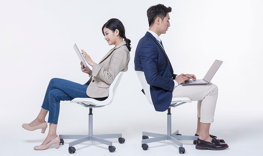 의자에 앉을 시, 엉덩이를 의자 깊숙이 넣은 상태에서, 등받이에 허리를 꼿꼿이 기대야 척추에 가해지는 하중을 분산시키는 것이 가능합니다. 그러므로 책상 의자에 앉을 때에는 목과 허리를 가능한 한 똑바로 편 상태에서 최대한 책상 쪽으로 당겨 앉는 것이 좋습니다.