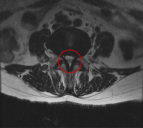 MRI 영상으로 봤을 때는 척추의 퇴행성 변화로 인해 황색인대가 부풀어오르기 시작하는 것을 협착증 초기로 봅니다. 그 다음 척추관 중앙의 공간이 30% 이상 막힌 것을 중기라고 판단하며, 척추관의 공간이 50% 이상 막혀서 심한 보행장애를 동반하는 것을 협착증 말기로 봅니다.