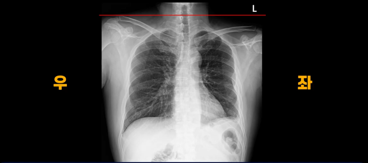 이분 X-ray 사진을 보시죠. 쇄골을 보면 어깨높이가 좌우가 완전히 달라져 있습니다.