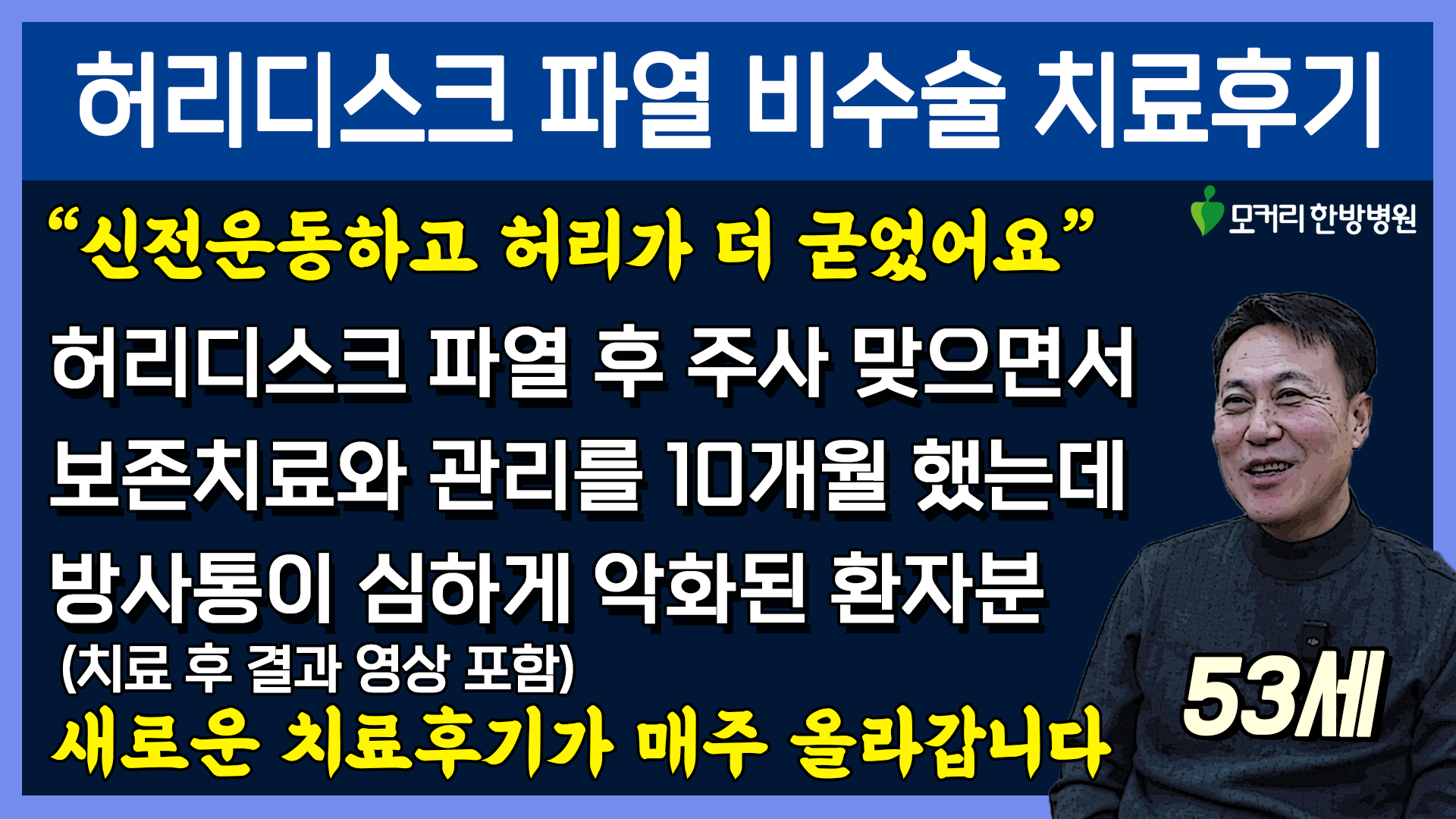 허리디스크파열 비수술 허리기능재활치료후기, 보존치료와 관리를 10개월이나 했는데 방사통이 심하게 악화된 환자분