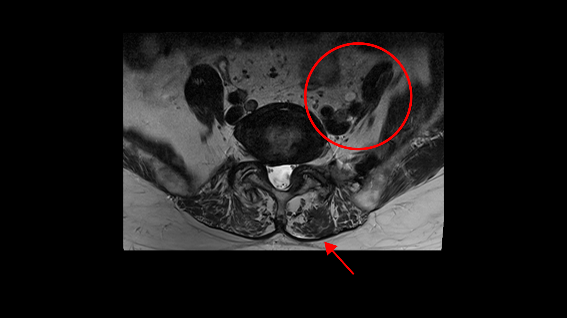 이 환자분의 근육을 MRI에서 보면 5번, 1번 마디에서 기립근과 장요근을 체크해봤을 때 기립근의 지방화 정도도 심하고 장요근, 특히 왼쪽 장요근은 거의 형체를 알아보기 어려울 정도로 위축이 심한 상태입니다.