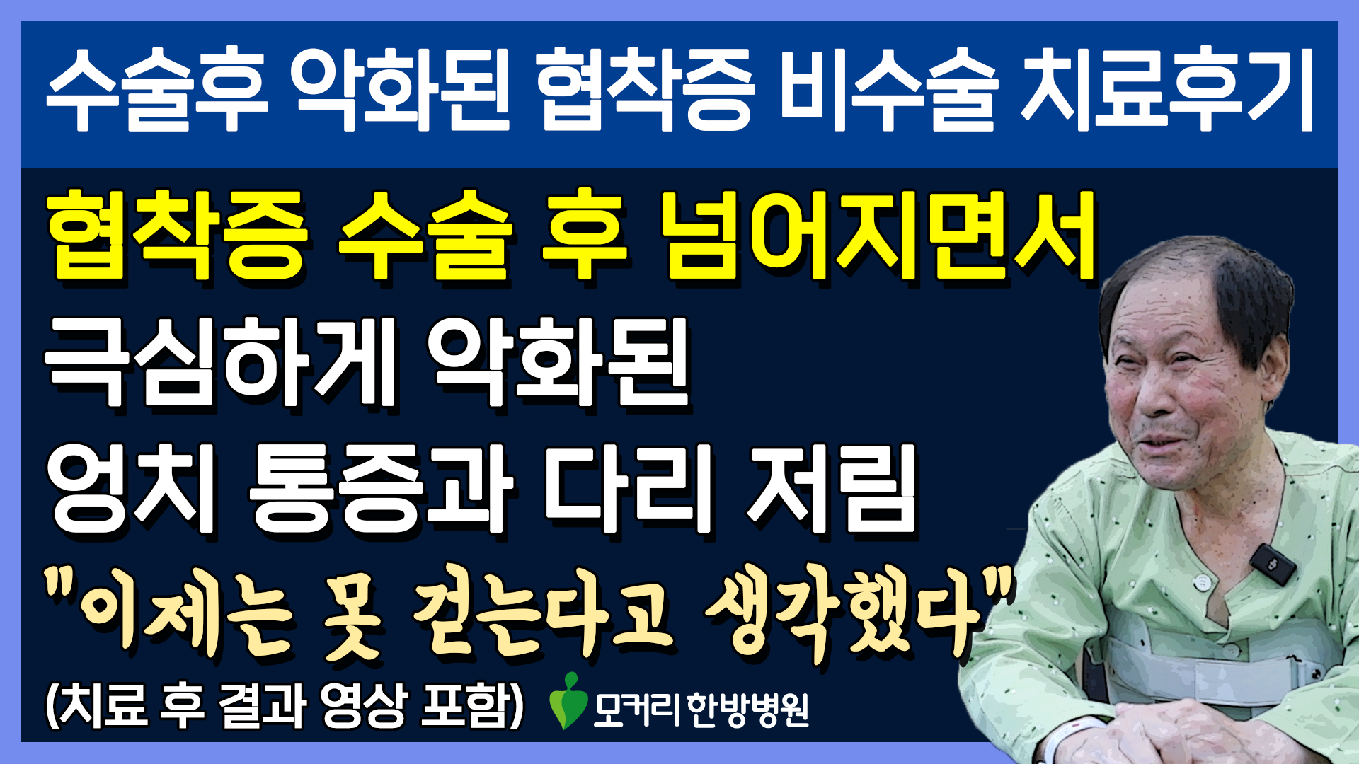 그래서 넘어졌다거나 무리한 운동이나 일도 협착증 증상이 갑자기 악화되었을 때 갑자기 못 걷는다고 또는 극심한 통증에 너무 아프다고 수술해야 되나 고민하지 마시고 2주 정도 입원 치료를 받아보시길 권해드립니다. 그럼, 이 환자분은 2주 정도의 입원 치료로 얼마나 빠르게, 어느 정도 좋아지셨을까요? 이제는 못 걷게 됐구나라고 생각하셨다는데 잘 걸을 수 있게 되셨을까요? 이분의 치료 후 결과가 궁금하시다면 아래 영상을 꼭 보시길 바랍니다.