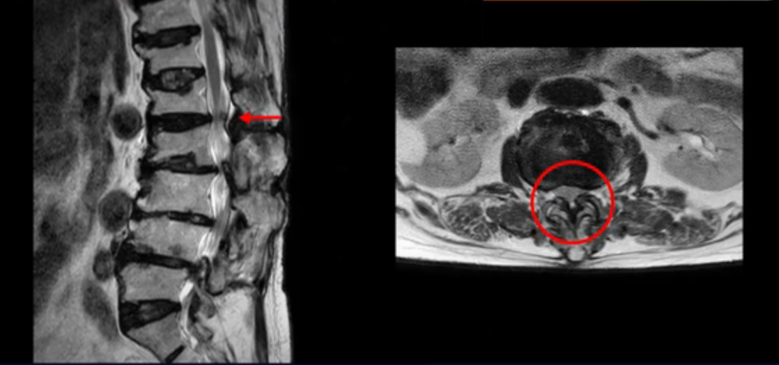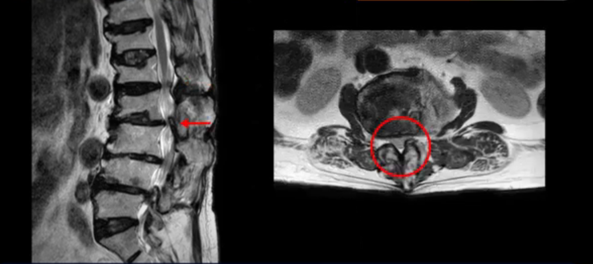 또 신경 가지가 빠져나가는 추간공도 좁아져 있습니다. 이런 이유로 환자분의 다리가 저리고 아픈 겁니다.