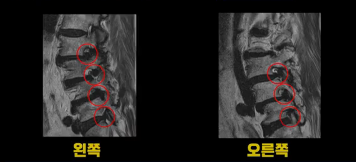 보시다시피 허리 다섯 마디 전부가 다 퇴행되어 있고,