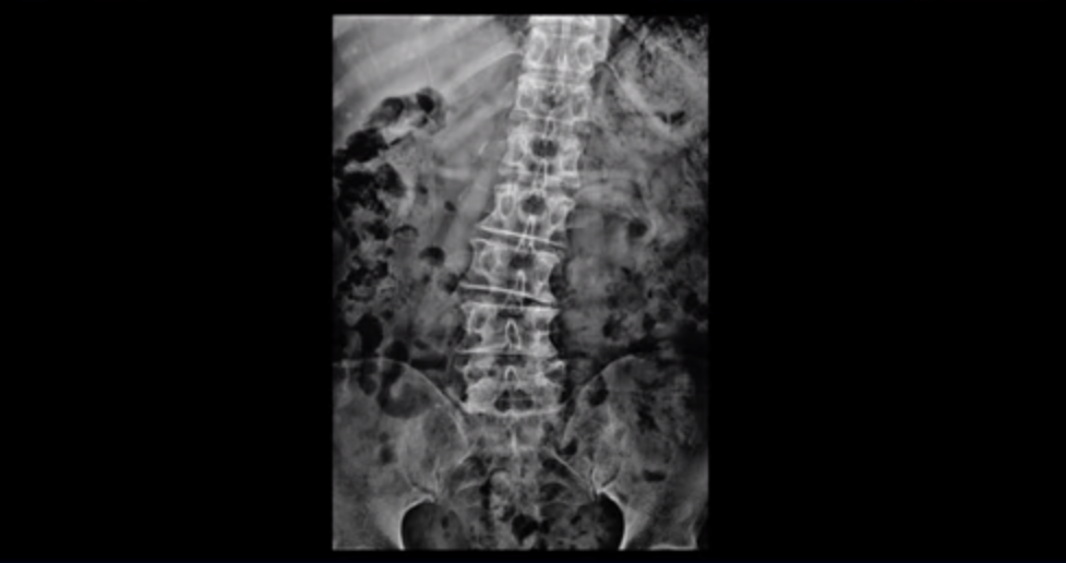이분 X-ray를 보시면 허리가 이렇게 심하게 휘어 있습니다.