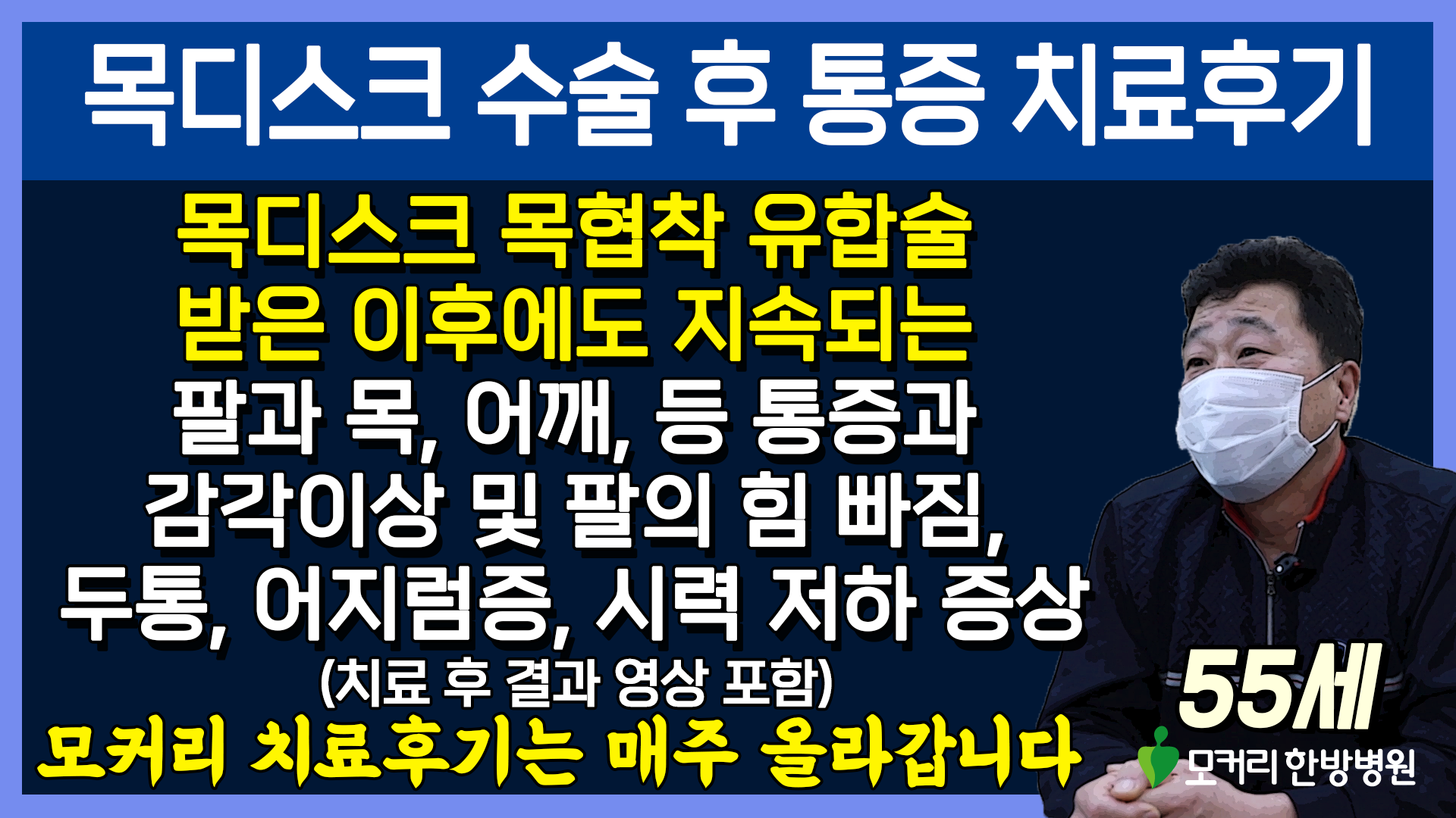목디스크 목협착증 수술 후 통증 치료후기, 수술 후에도 지속되는 팔과 목, 어깨, 등통증, 감각이상, 팔 힘빠짐, 두통, 어지럼증, 시력저하, 이런 증상이 어떻게 좋아질 수 있을까?