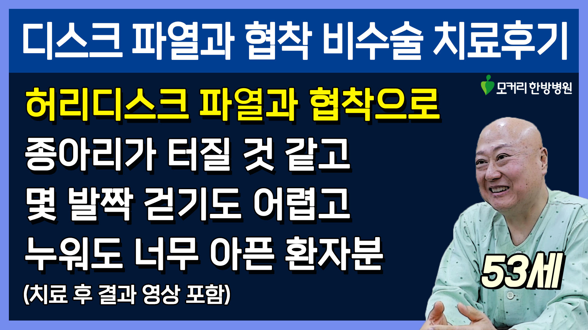 허리디스크파열 비수술 근육신경재활치료후기, 종아리가 터질 것 같고 몇 발자국 걷기도 어려운 환자분, “많은 치료후기들을 보고 고민 없이 모커리로 바로 왔습니다”
