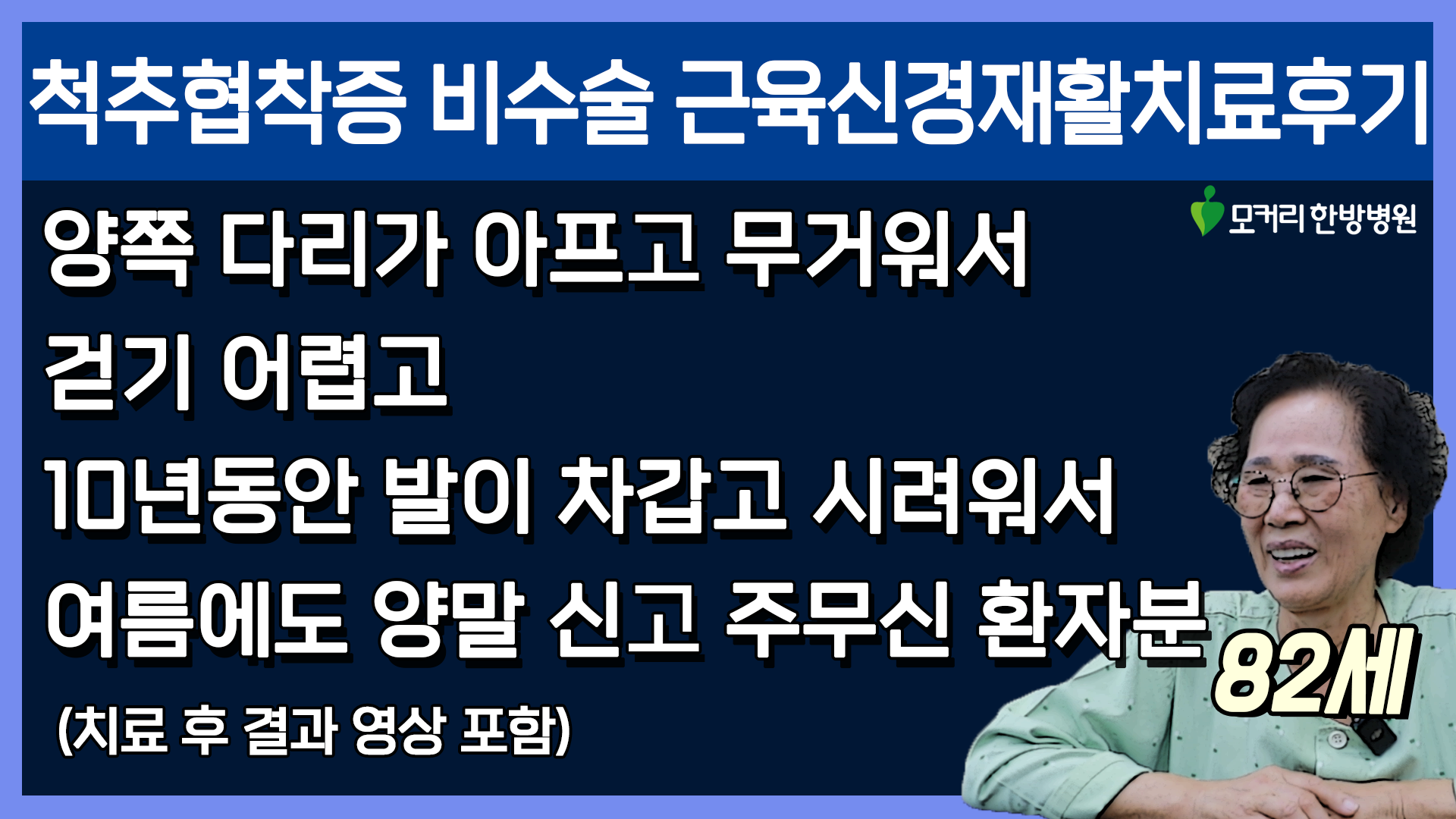 척추협착증 비수술 근육신경재활치료후기 양쪽 다리가 아프고 무거워 걷기 어렵고 10년 동안 발이 시린 환자분 "신경주사는 안 듣고 수술밖에 방법이 없대요"