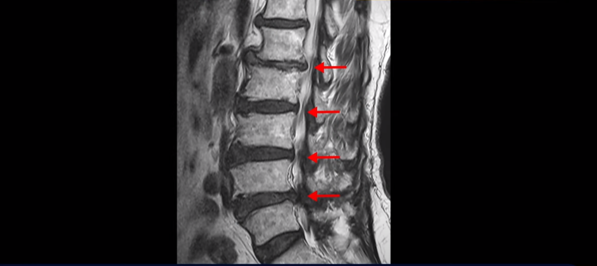 이분 MRI를 보면 척추의 여러 마디가 퇴행이 진행되어 안 좋습니다.