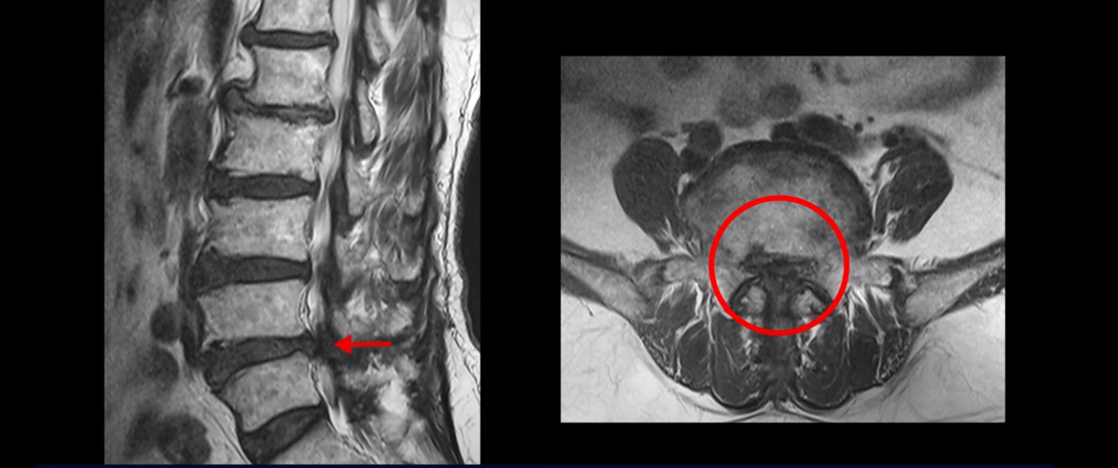 먼저 이분 MRI를 보면서 간단히 설명드린 후 어떻게 신경이 눌려서 반드시 수술해야 한다는 환자나 이 환자분처럼 수술이 필요하지만 나이가 많아서 못한다고 하는 환자분을 수술 없이 치료할 수 있는지 또 치료는 어떻게 하는지 자세히 설명드리겠습니다.