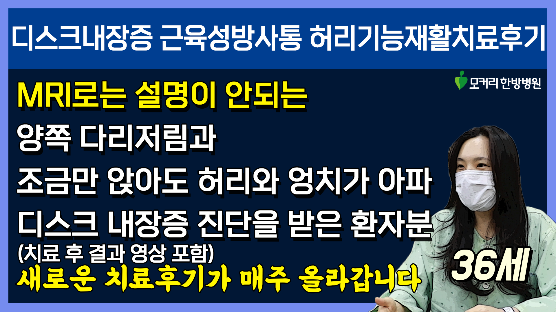 너무 답답하니까 일상생활도 안 되고 제가 나이를 엄청 많이 먹은 것도 아니고 사회생활도 해야 되는데 전혀 안 되고 사회생활뿐만 아니라 일상적인 생활도 무너지니까 답답해서 유튜브를 많이 찾아봤거든요. 근데 유튜브에서 치료후기를 봤는데 저랑 증상이 비슷하신 거예요. 치료후기를 보면서 선뜻 ‘갈까?’ 이런 생각은 못했던 것 같아요. 근데 증상이 계속되면서 더 이상 할 수 있는 게 수술밖에 없다고 하고 시술도 해봤고 주사도 이렇게 많이 맞았으면 신경성형술을 권하기도 하는데 주위에서 신경성형술도 크게 의미 없다는 말이 너무 많아서 ‘진짜 마지막이다’ ‘모커리 비수술 치료도 안 되면 진짜 수술해야지’ 이렇게 생각해서 수술하기 전에 마지막 종착역 느낌으로 오게 된 것 같아요. 예전에 컨디션이 좋았던 적도 있죠. 증상이 회복이 되는 시기도 있었는데 그때마다 제가 뭔가 문제되는 행동들을 하더라고요. 몸이 좀 회복 됐으니까 사람 만나서 한두 시간 정도 앉아 있을 수 있을 거라고 생각해서 이제 좀 바깥 생활을 하면 또 어김없이 컨디션이 안 좋아지고 제가 모커리에 입원하기 직전에도 컨디션이 조금 좋아져서 조금 일상생활을 하고 있었는데 그러다가 갑자기 또 확 안 좋아져서 이게 컨디션이 조금 좋아졌다고 일상생활을 할 수 있을 정도가 아니라는 걸 느껴서 치료를 진짜 마지막으로 제대로 받아봐야겠다 하고 모커리로 온 거였던 것 같아요.
