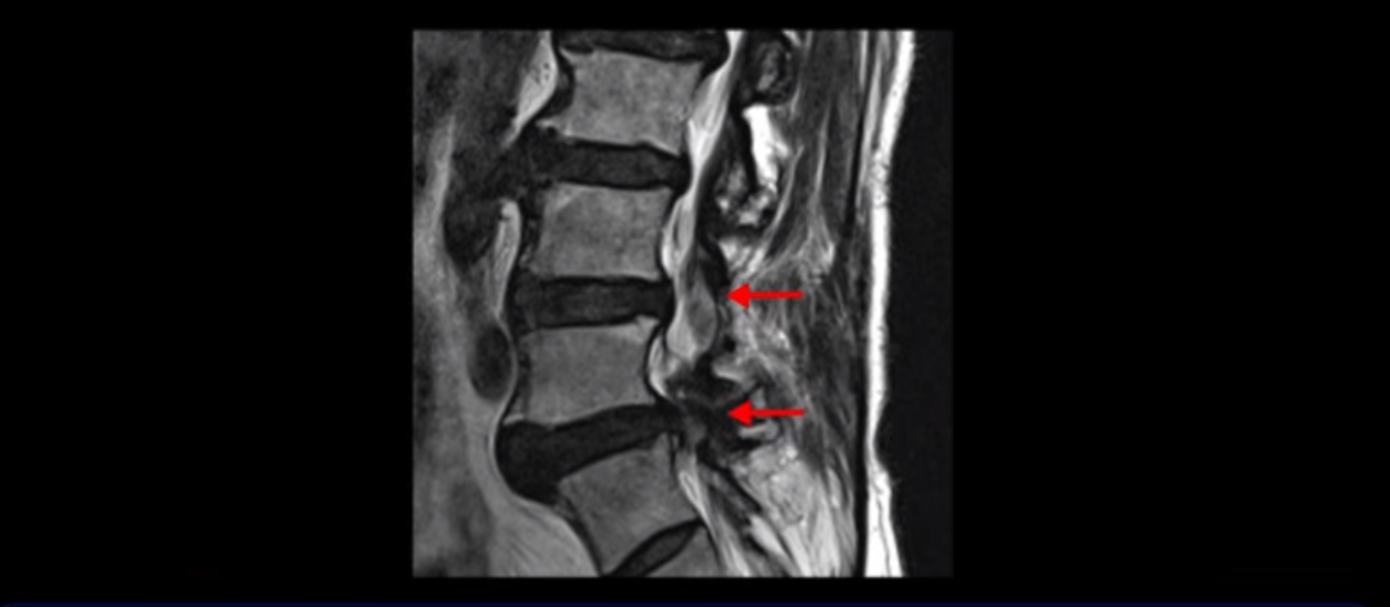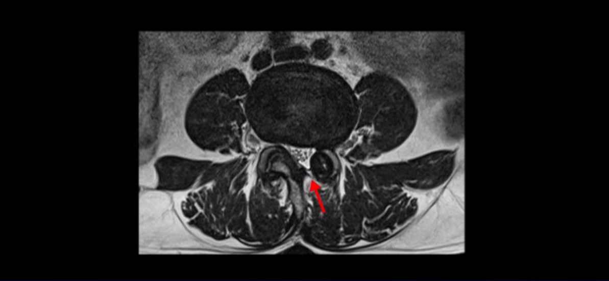 이 환자분은 협착증 수술을 두 번 받은 뒤에 또 다시 다리 방사통이 심해지고 발목 마비 증상(풋드랍)이 생겨서 이번에는 유합술을 권유받은 환자분입니다. 먼저 MRI를 보고 설명해 드린 후 이런 환자분의 방사통과 발목의 마비와 힘 빠짐이 어떻게 수술 없이도 좋아질 수 있는지 그리고 치료는 어떻게 하는지 자세히 설명드리겠습니다.